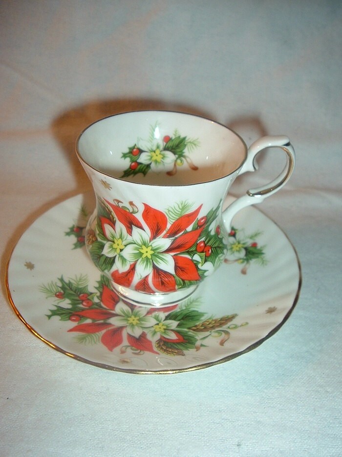 This is a Royal England Bone China Noel pattern small cup and saucer. It's a little smaller than a standard size set -- and a little bit larger than a demitasse size. The cup measures approx. 2 7/8"H and 3.25" from handle to opposite rim. The saucer is approx. 4 7/8" across. There are no chips or cracks. Strong gold trim. No signs of use. I gladly combine shipping.