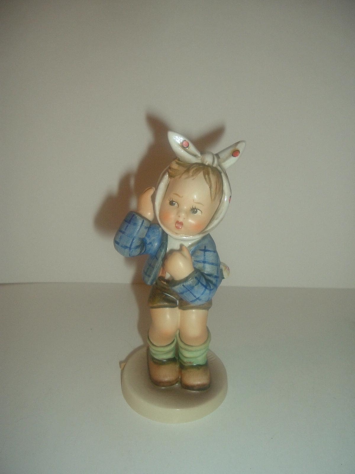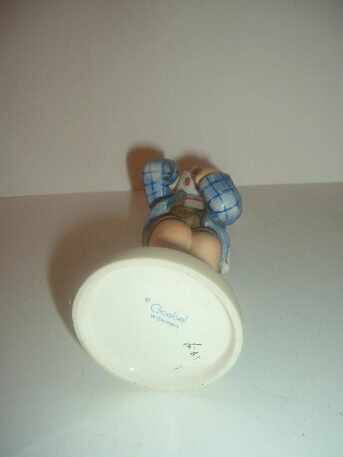 This Hummel HUM 217 Boy With Toothache figurine measures approx. 5.5"H. It is excellent, with no chips, no cracks, and no wear. The missing bee -- TMK 6 -- mark is on the bottom. Figurine only -- no box. A nice one! I gladly combine shipping.