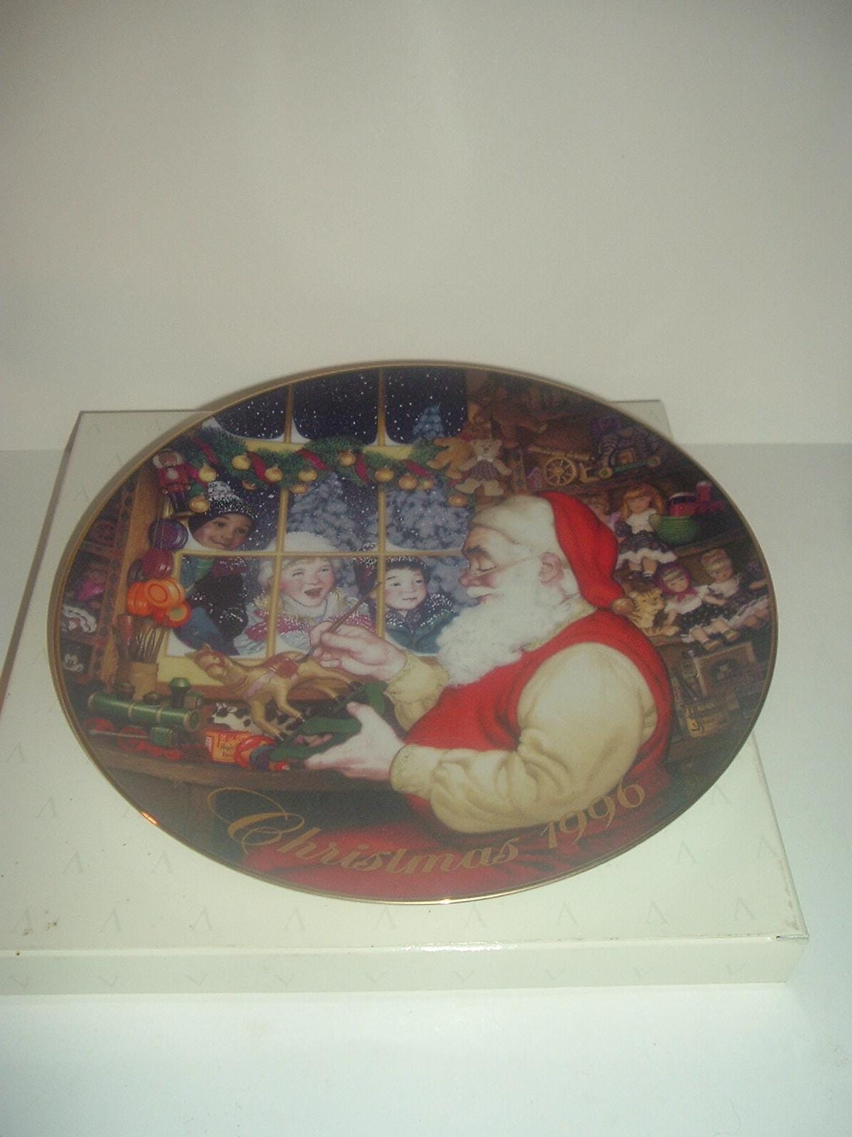 This 1996 santa's Loving Touch plate measures approx. 8.25" across. This Avon Fine Collectibles Santa decorated piece, is in excellent condition with no chips, no cracks, and no wear or scratching. Box is still in good shape with a little light shelf wear. A nice one! I gladly combine shipping.