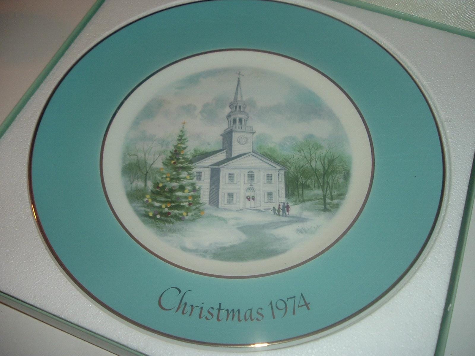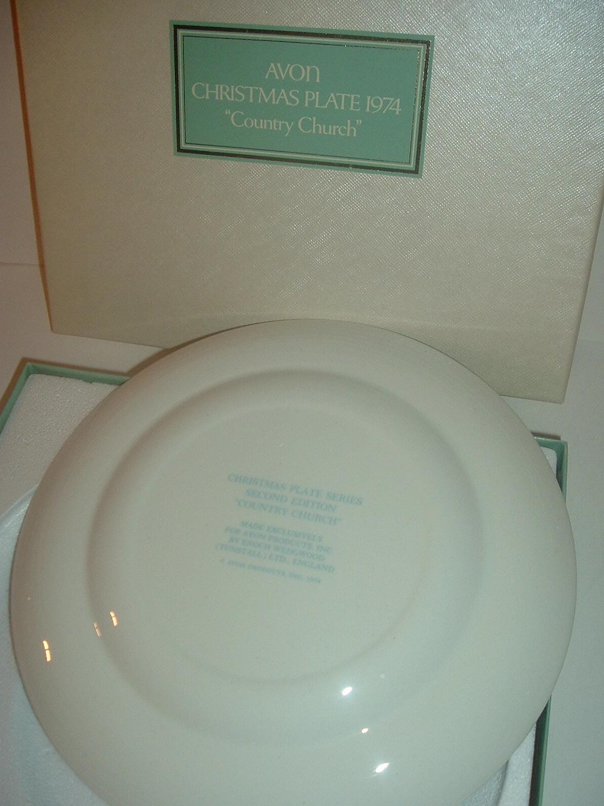 This 1974 "Country Church" Christmas Plate measures approx. 8 5/8" across. This Avon Collectibles was made by Enoch Wedgwood, and is in excellent condition with no chips, no cracks, and no wear or scratching. Box is still in good shape with a little light shelf wear. A nice one! I gladly combine shipping.