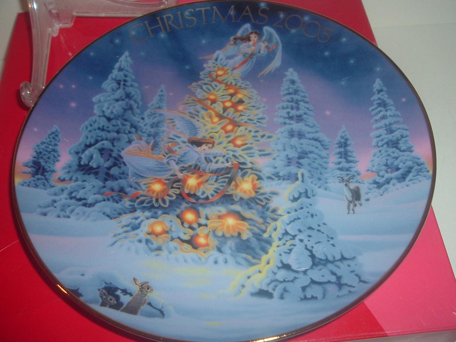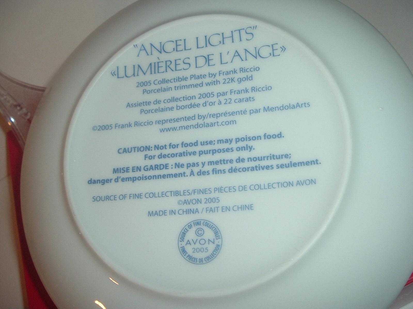 This 2005 Angel Lights plate measures approx. 8.25" across. This Avon Fine Collectibles decoration is by Frank Riccio, and is in excellent condition with no chips, no cracks, and no wear or scratching. Box is still in good shape with a little light shelf wear. Comes with a little clear plastic stand. A nice one! I gladly combine shipping.
