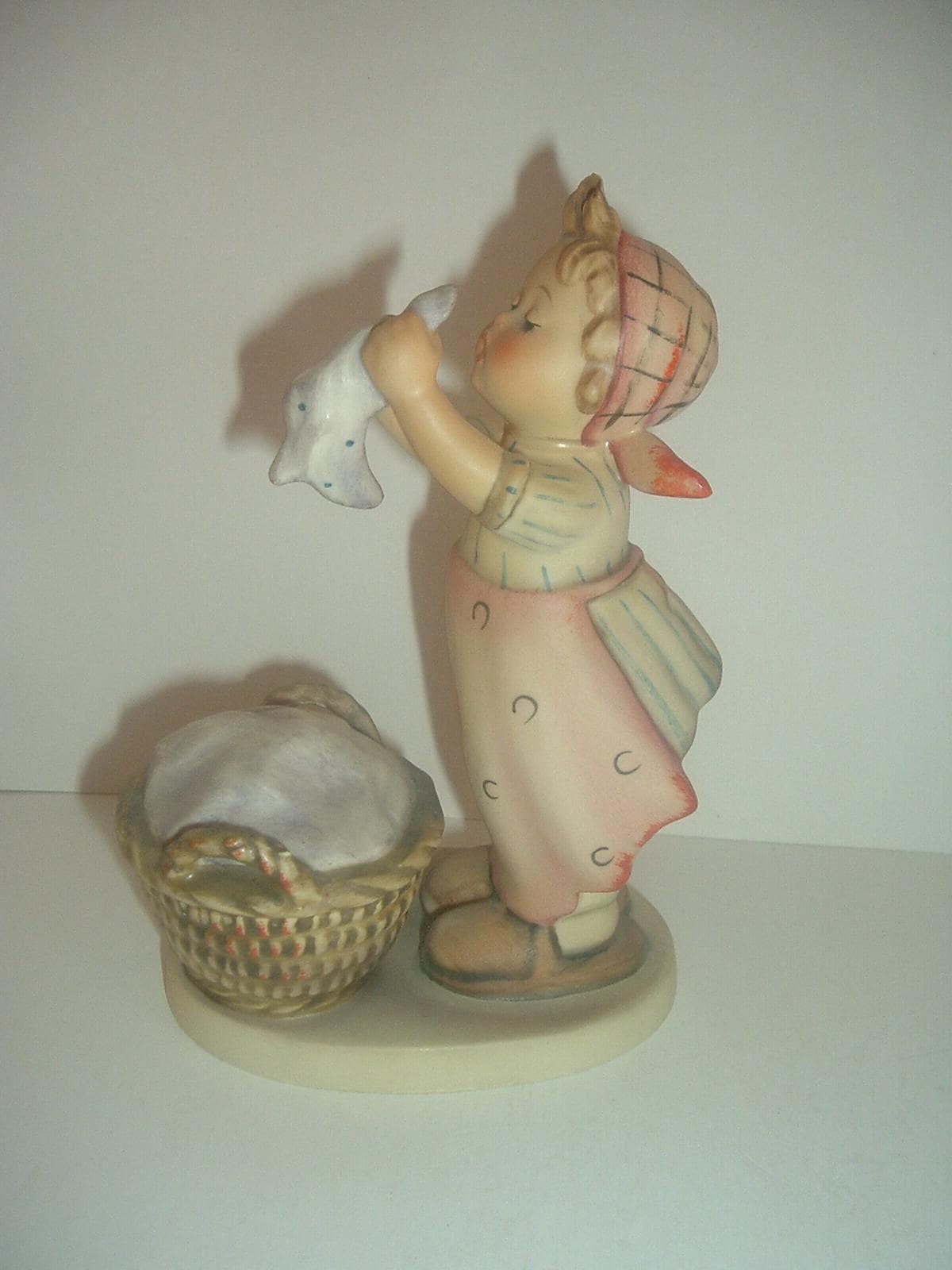 This Hummel HUM 321 Wash Day girl figurine measures approx. 6"H. It is excellent, with no chips, no cracks, and no wear. The three line -- TMK 4 -- mark is on the bottom. Figurine only -- no box. A nice one! I gladly combine shipping.