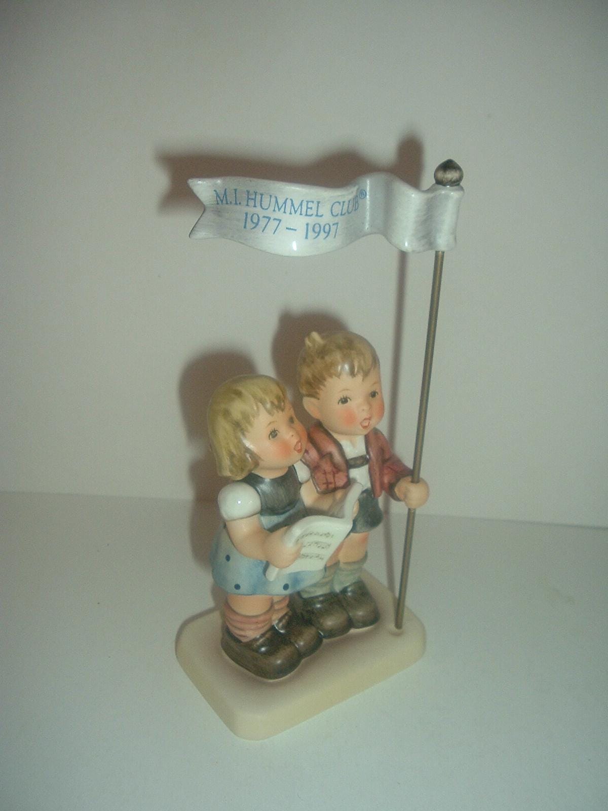 This Hummel HUM 790 Boy and Girl Club figurine measures approx. 6.75"H including flag or 4.5"H not including the flag and flag pole. It is excellent with no chips, no cracks, and no wear. This was a 1997 piece -- it looks like a 20th anniversary for the Hummel club commemorative piece. No box or paperwork -- figurine only. A nice one! I gladly combine shipping.