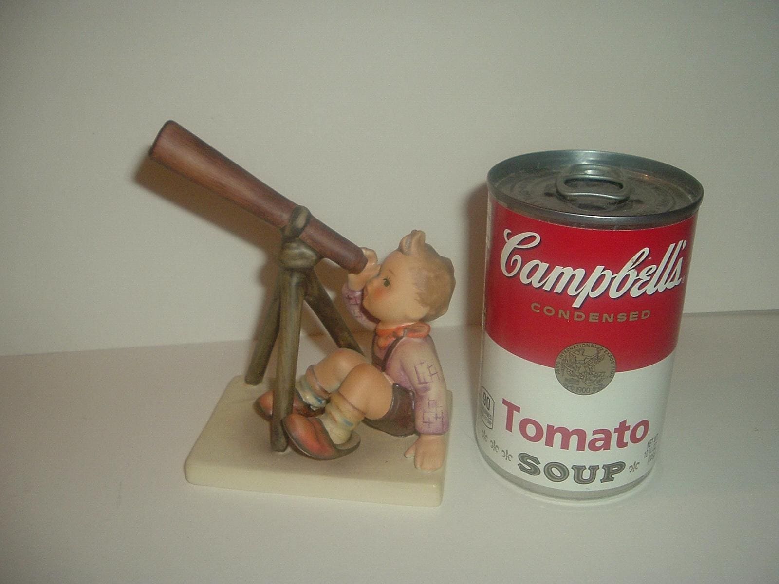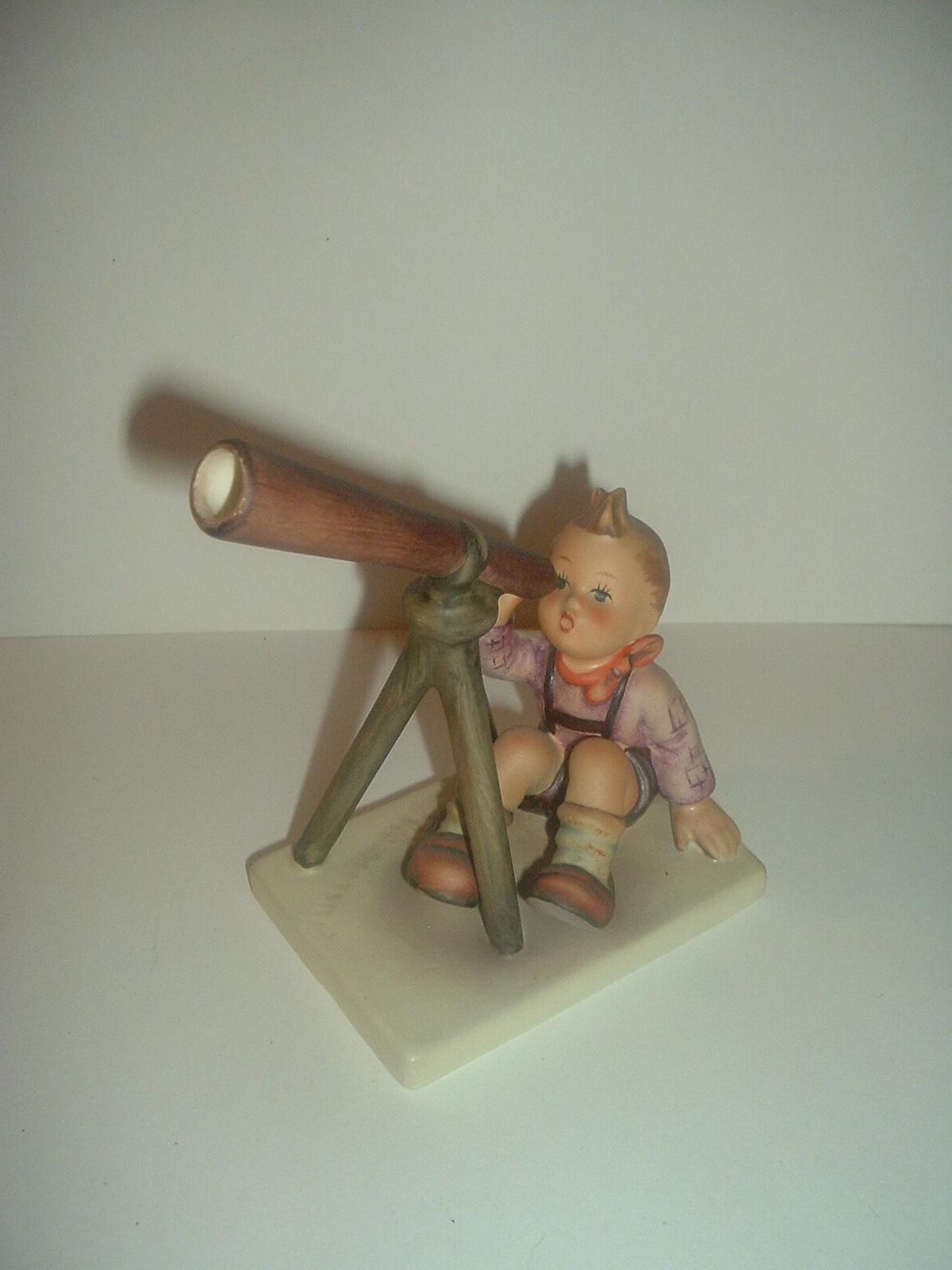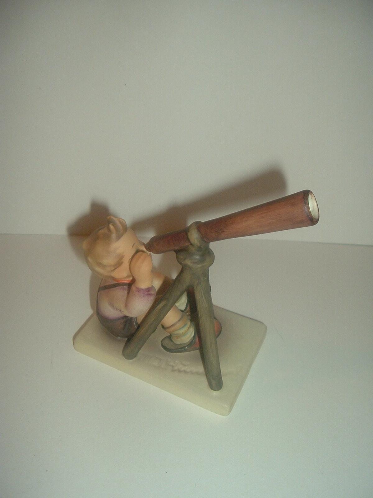 This Hummel HUM 132 Star Gazer -- boy with telescope -- figurine measures approx. 4 5/8"H and approx. 4.5"L (to end of telescope). He is excellent, with no chips, no cracks, and no wear. The bee in v over e mark -- TMK 5 --is on the bottom. Figurine only -- no box. A nice one! I gladly combine shipping.