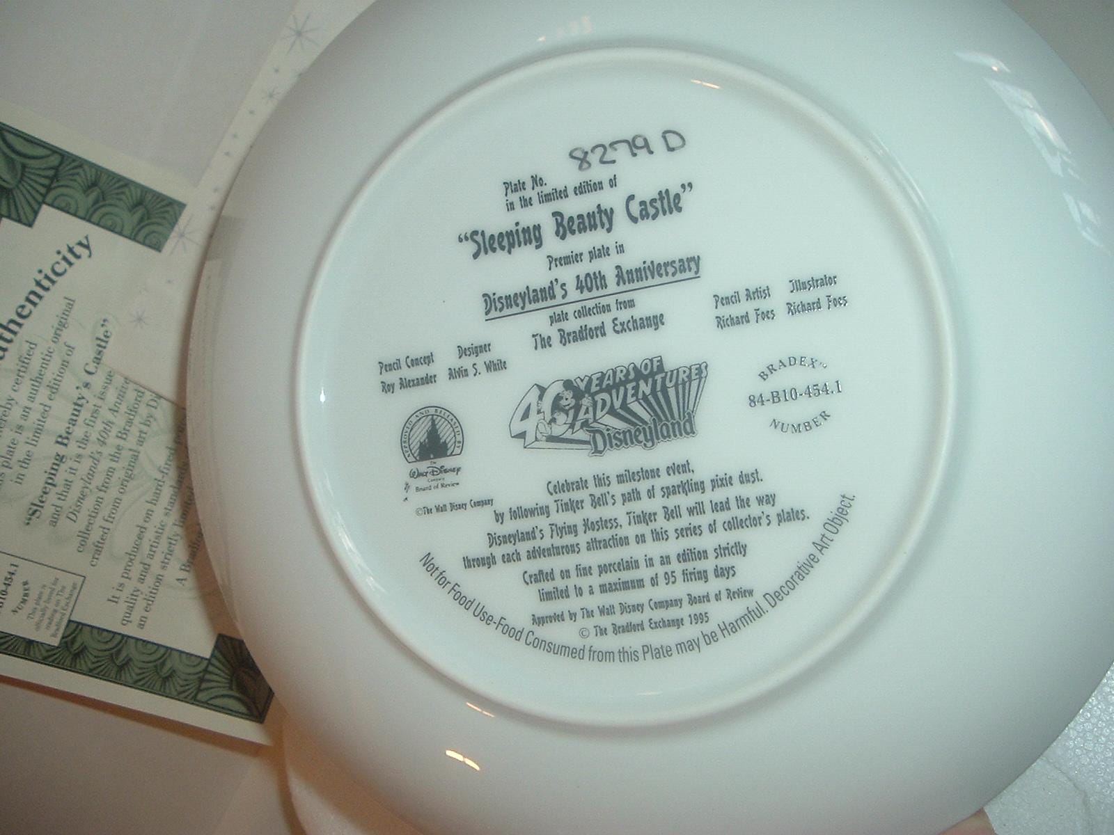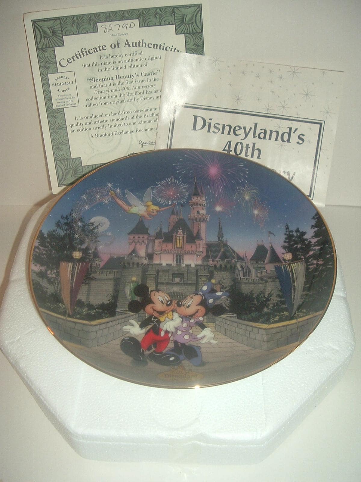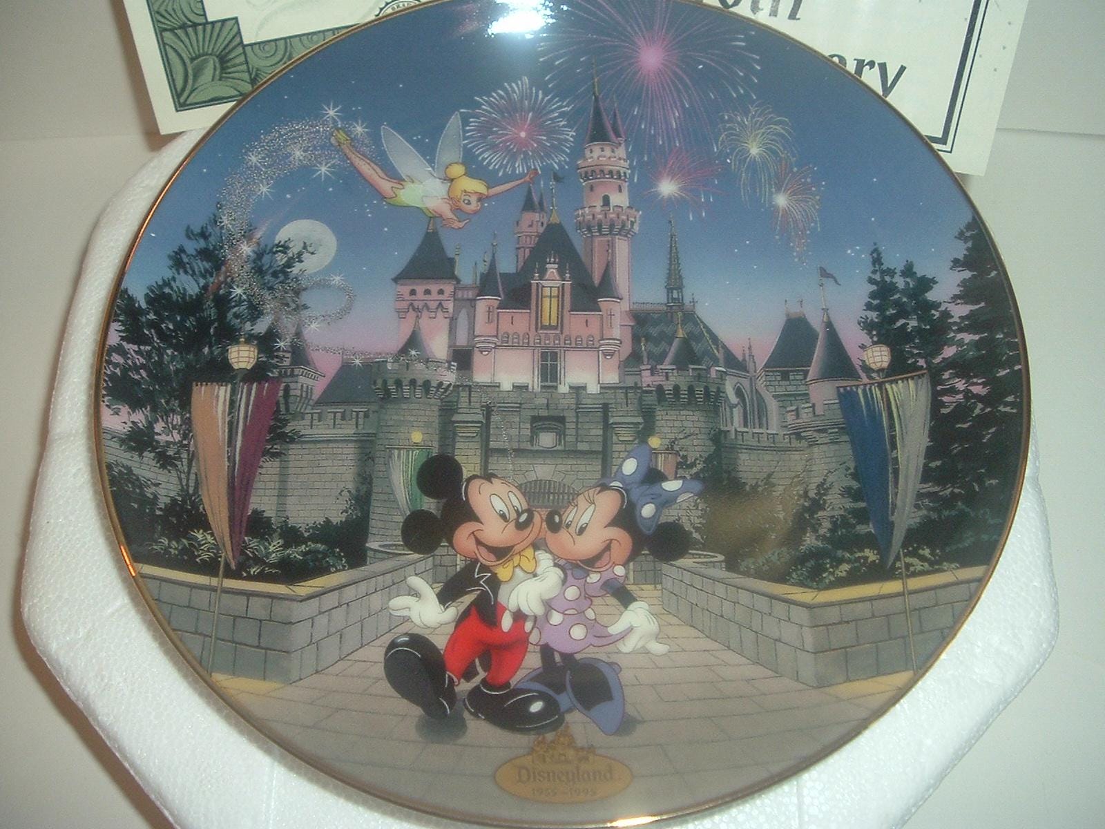This Disney "Sleeping Beauty's Castle" plate measures approx. 8" across. It was the first issue of the Disneyland's 40th Anniversary Collection, and is in excellent condition with no chips, no cracks, and no wear or scratching. It comes in its original foam "box" with its COA. Very nice! I gladly combine shipping.