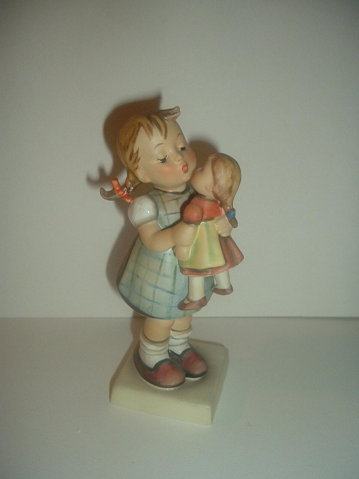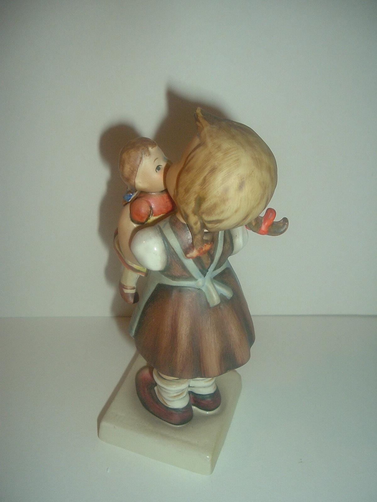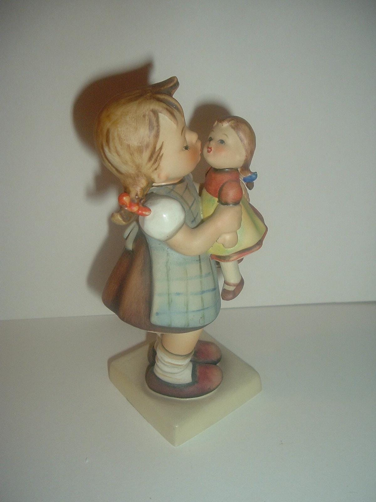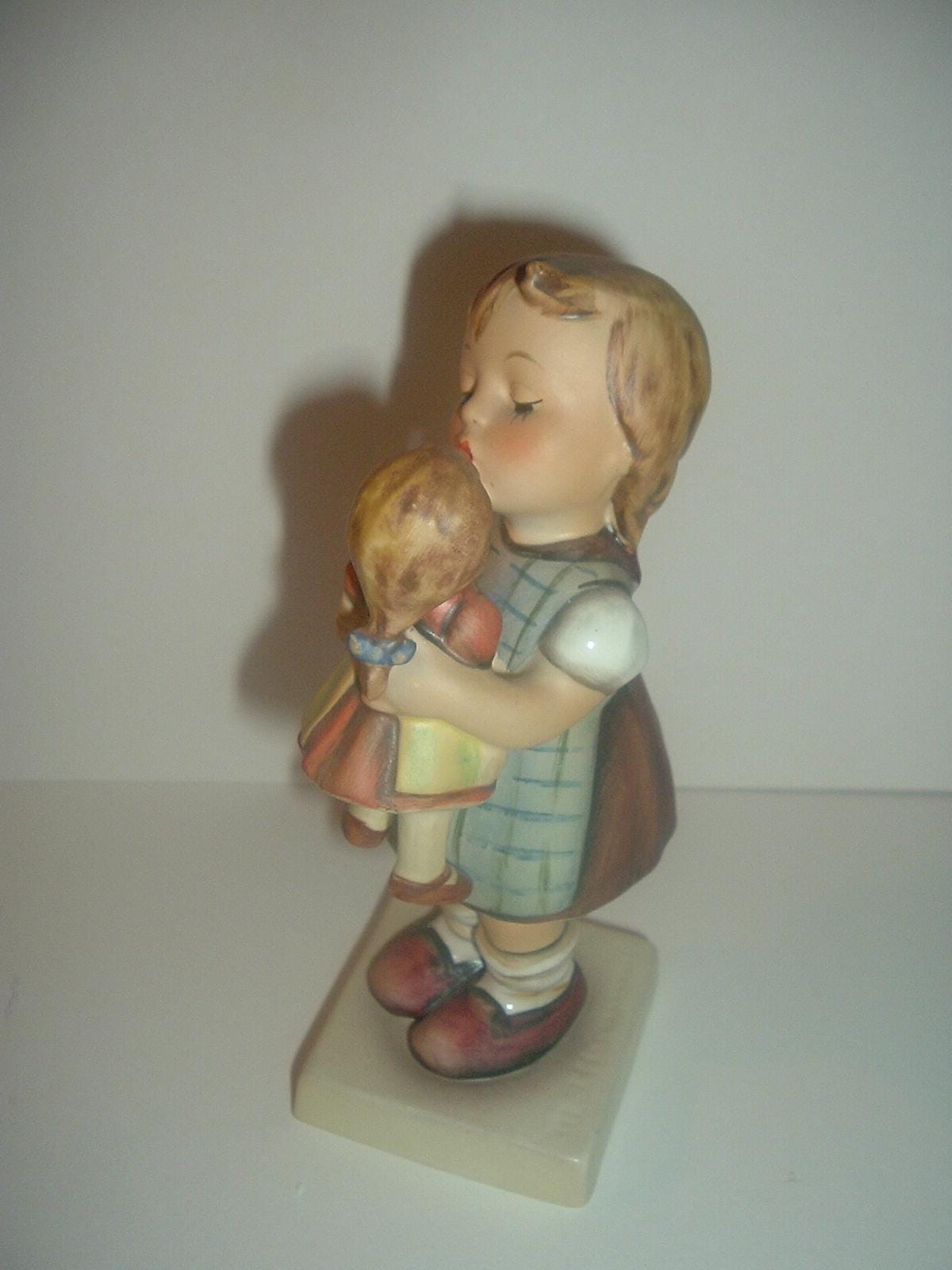 This Hummel HUM 311 Kiss Me girl with doll figurine measures approx. 6"H. She is excellent, with no chips, no cracks, and no wear. The three line -- TMK 4 -- mark is on the bottom. Figurine only -- no box. A nice one! I gladly combine shipping.