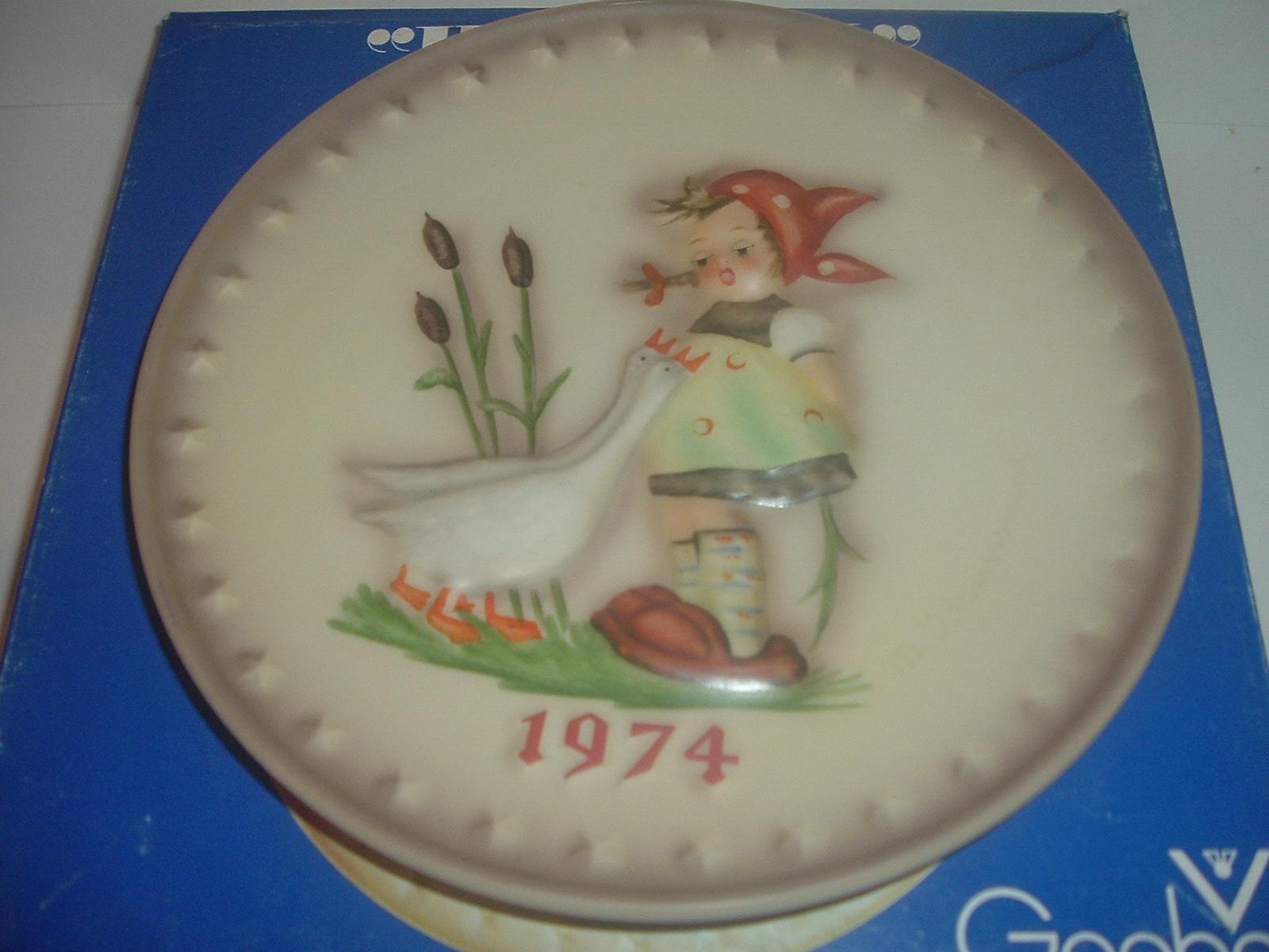 This 1974 Hummel Annual Plate -- featuring the goose girl -- measures approx. 7.5" across. It is in excellent condition with no chips, no cracks, and no wear or scratching. Box is in OK shape with shelf wear and tape. Very nice! I gladly combine shipping.