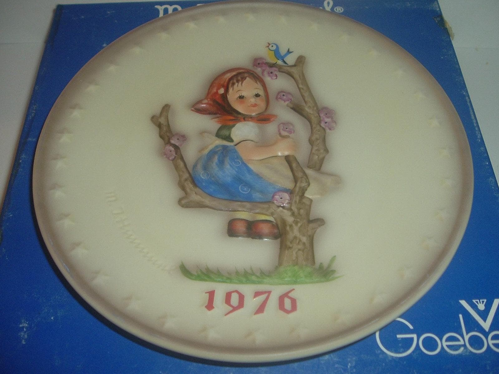 This 1976 Hummel Annual Plate -- featuring the apple tree girl -- measures approx. 7.5" across. It is in excellent condition with no chips, no cracks, and no wear or scratching. Box is in OK shape with shelf wear and tape. Very nice! I gladly combine shipping.