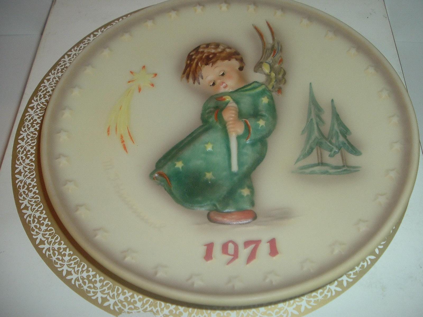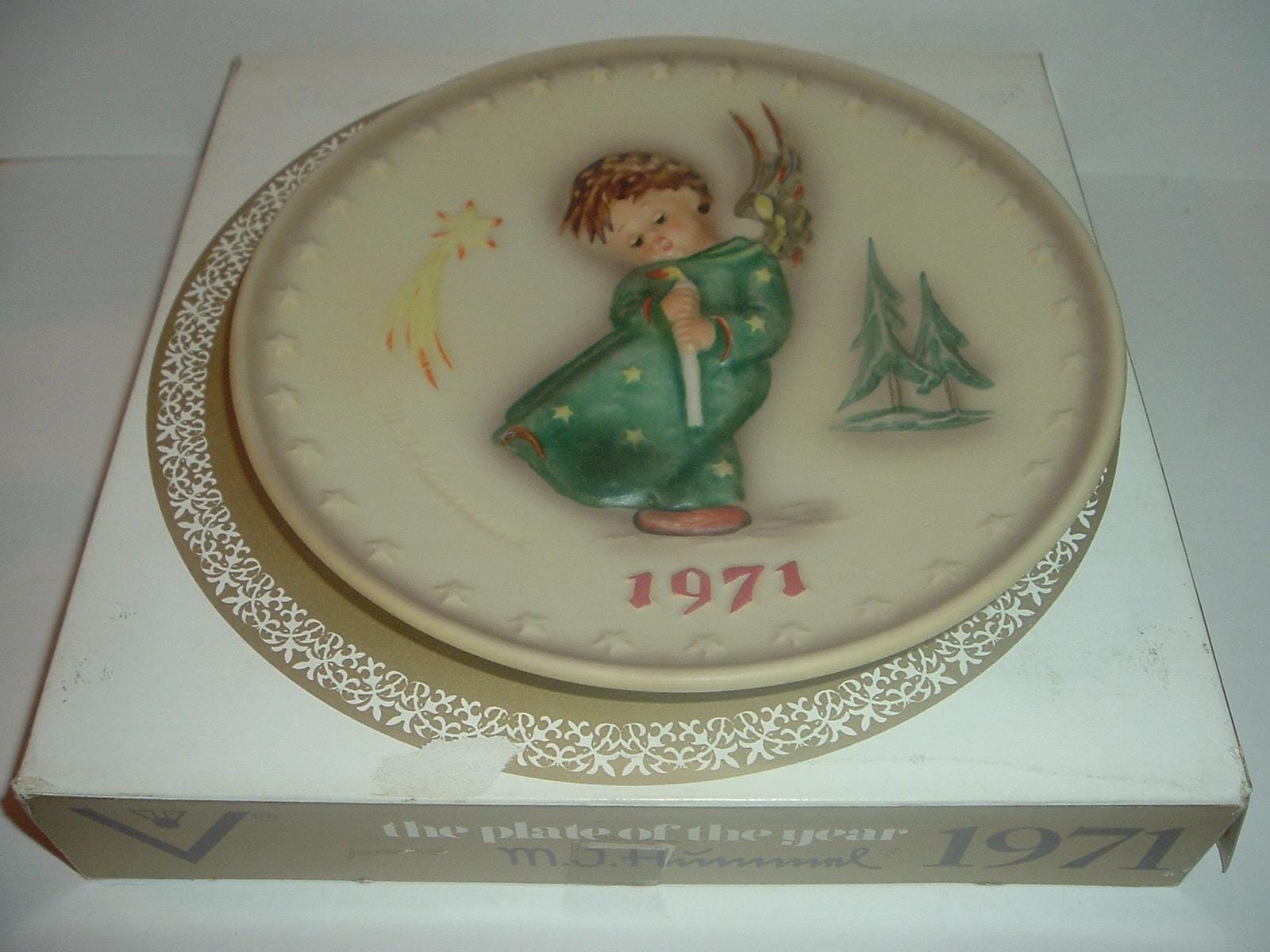 This 1971 Hummel Annual Plate measures approx. 7.5" across. It is in excellent condition with no chips, no cracks, and no wear or scratching. Box is in OK shape with some shelf wear. Very nice! I gladly combine shipping.