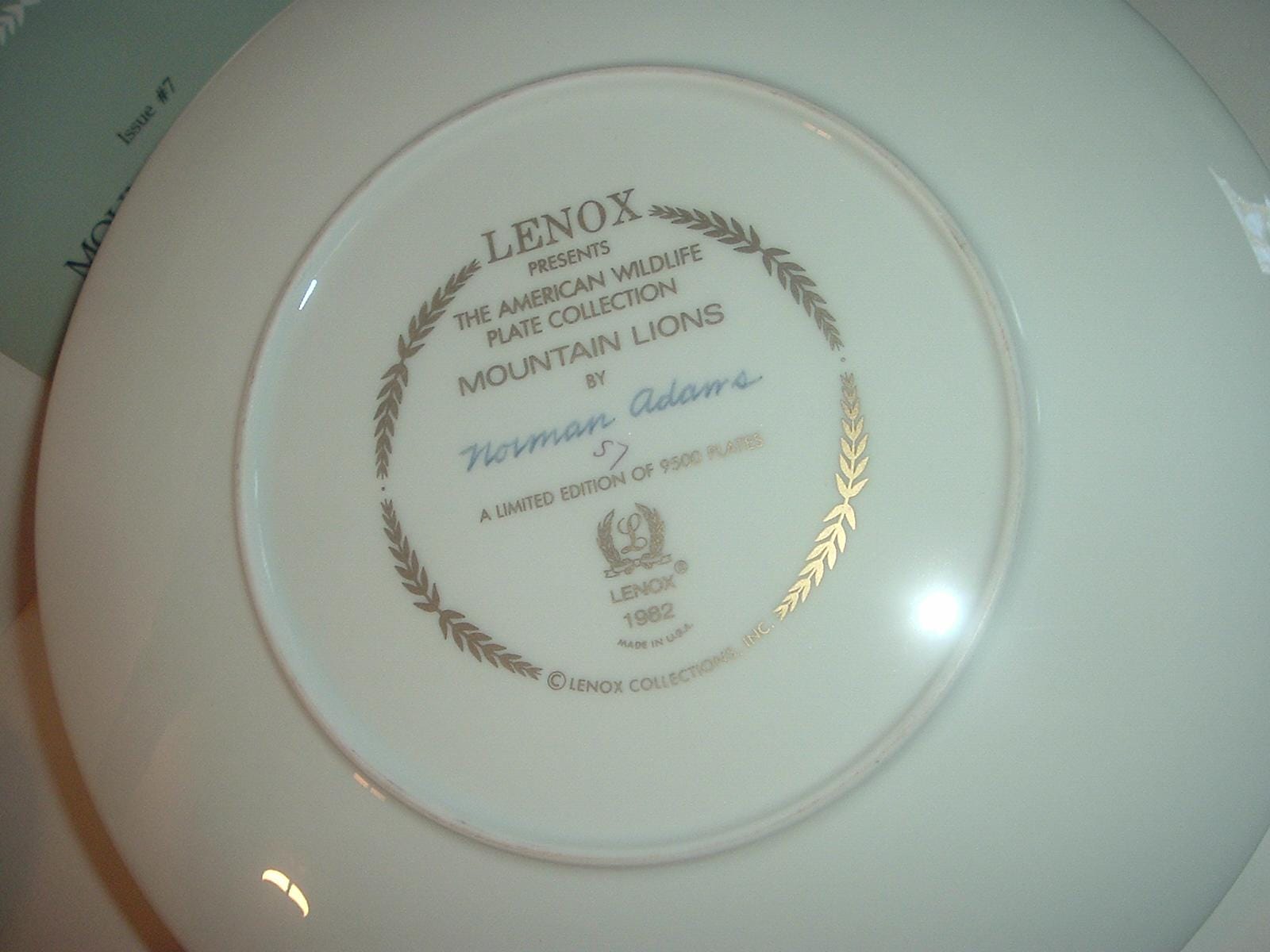 This 1982 Lenox Mountain Lion plate measures approx. 10.25" across. This one is part of the American Wildlife Collection, and is excellent with no chips, no cracks, and no wear or scratching. No box -- plate only -- although I do have a little pamphlet with it. A nice piece! I gladly combine shipping.