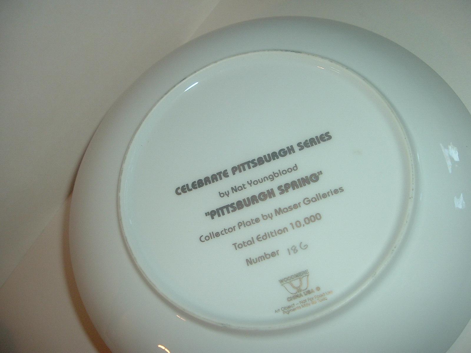 This Nat Youngblood "Pittsburgh Spring" plate measures approx. 8 3/8" across. It is excellent with no chips, no cracks, and no wear or scratching. No box -- plate only. Part of a limited edition. A nice piece! I gladly combine shipping.